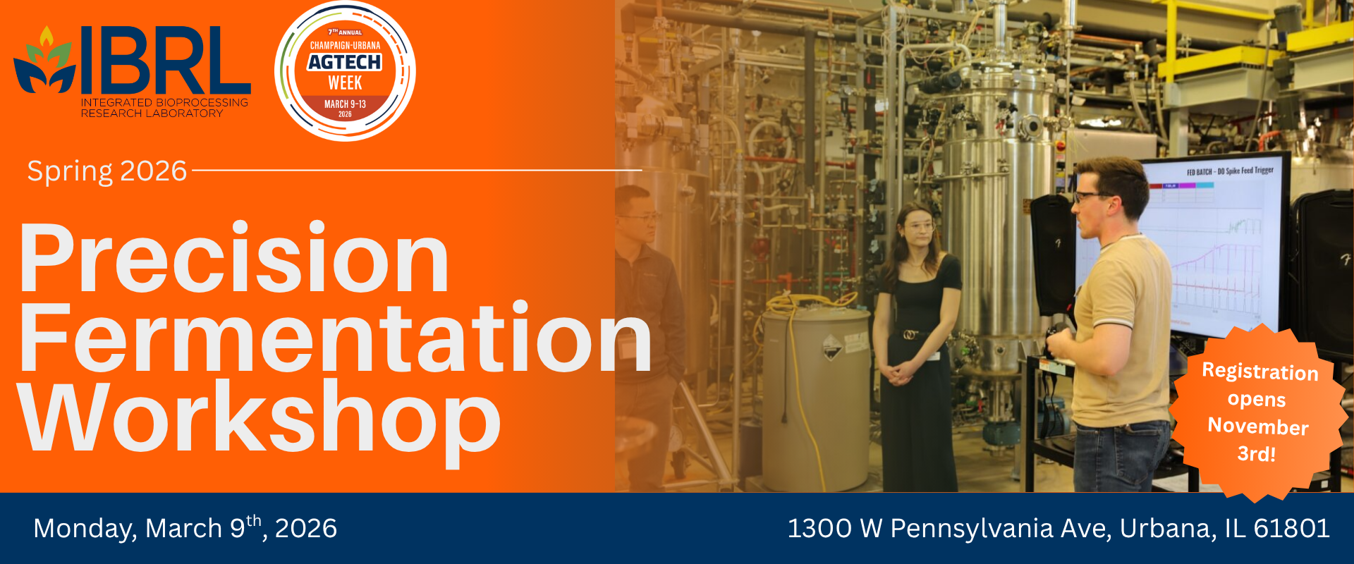In collaboration with CU AgTech Week, the Integrated Bioprocessing Research Laboratory (IBRL) is excited to offer a Precision Fermentation workshop at IBRL’s Pilot Plant facility. This workshop is intended for those new to fermentation and will include an overview of the fermentation industry, the precision fermentation process from beginning to end, and an in-depth walkthrough of our working pilot plant.